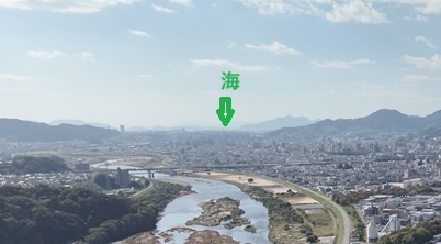 今回はやや霞がかかっており、前回のように海をはっきりと確認することはできませんでしたが、撮影地点が前回の場所から約1.5km川を上流側へ移動していたこともあり、見え方の違いを改めて実感しました。